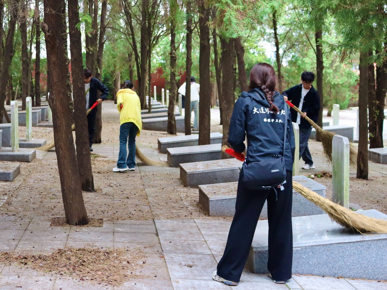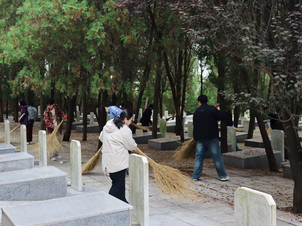 随后,同学们在老师及工作人员的带领下分工协作,对陵园墓碑周边及步道进行清扫,活动中,学生处杨勋老师深刻阐述了此次活动的重要意义,指出缅怀革命先烈不仅是一次深刻的爱国主义教育,更是一堂鲜活的思政课,勉励同学们铭记历史、传承红色基因,把对英烈的敬仰转化为勤奋学习、服务社会的动力,让青春在新时代的奋斗中绽放光彩。活动后,师生还就大学生资助政策细则、奖学金名额占比等内容进行讨论,同学们积极参与、踊跃发言,加强了学生对资助政策的了解。