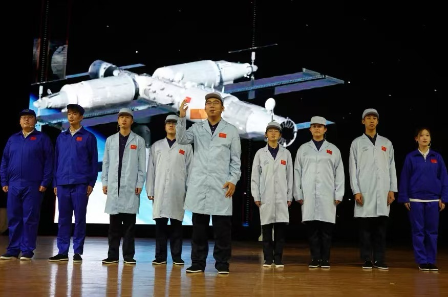 《问天——神舟总师戚发轫》,该剧以时间为轴,串联起戚发轫院士在抗美援朝岁月立下“航空救国”志向,冲破技术封锁攻坚导弹与卫星研发,到晚年亲历神舟飞天盛况并悉心培育航天后辈的人生篇章。当舞台上呈现“神舟飞船成功升空”的模拟场景时,台下师生自发响起掌声。