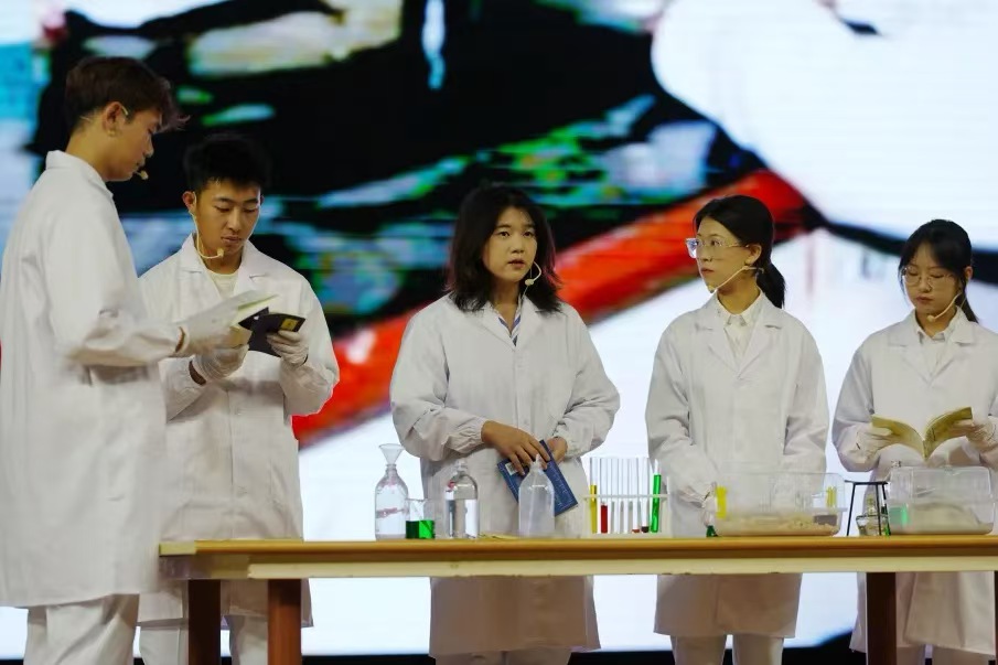 《呦呦鹿鸣 梦起青蒿》,围绕屠呦呦院士的科研突破展开,再现她临危受命后埋首古籍寻线索、在数百次实验失利中坚持探索,甚至主动以身试药验证青蒿素效果的过程。当屠呦呦表达出“要把论文写在祖国大地上”的决心时,台下师生屏息凝神,剧目结束后全场响起热烈掌声。