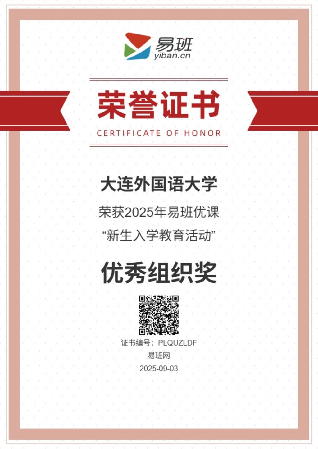 近日,由教育部易班发展中心开展的2025年全国易班优课“新生入学教育活动”圆满落幕,我校荣获“优秀组织奖”。
